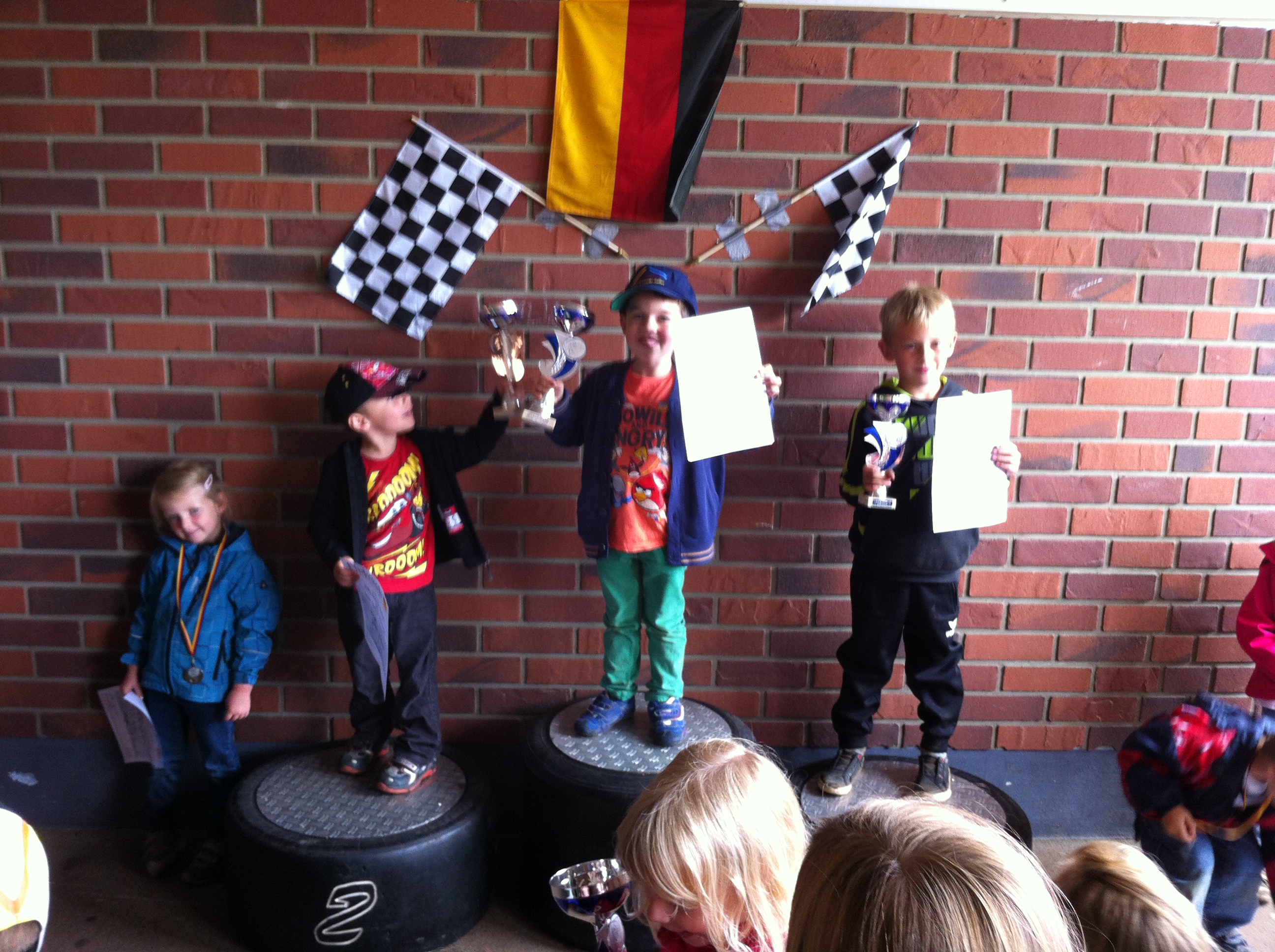 Klasse 1 v.l. Platz 4 Merle Kleinhans, RG Solms, Platz 2 Jason Orfmann, ohne Verein, Platz 1 David Noll, AMC Hungen, Platz 3 Levin Weber, RG Solms